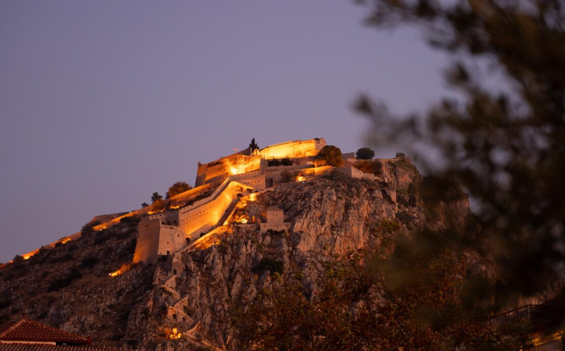 An impressive 18th-century Venetian fortress, built 216 meters above Nafplio. It’s famous for the 999 steps leading to its summit (though there is also a road). The view over the Argolic Gulf and the town is breathtaking, especially at sunset.